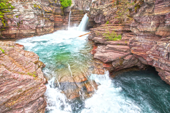 This photo was taken at St. Mary's Falls the summer following Reynolds Creek fire which passed through this area.