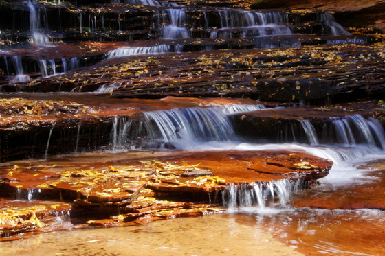 Fall water dance. A beautiful waterfall in the Left Fork North Creek canyon.