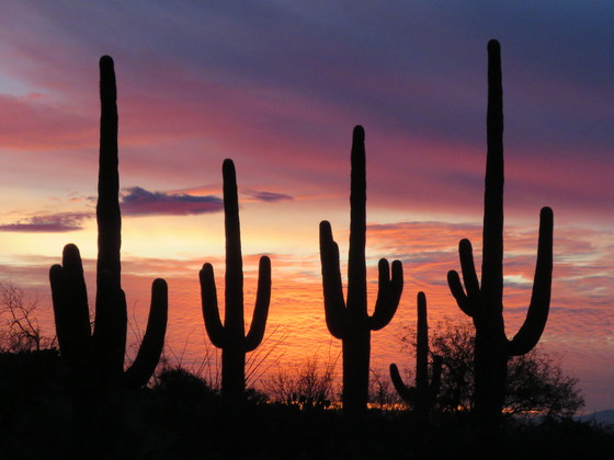Saguaro National Park, so-named because of the beautiful saguaro cacti that dot its desert landscape, is a beautiful gem in southern Arizona. On this particular evening, the sunset put on a dazzling display of orange and pink, inviting a classic saguaro sunset silhouette. I was lucky to be in the right place at the right time and capture these four cacti silhouetted in the gorgeous light of the sunset.