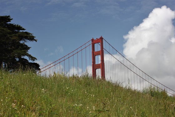 View of the south tower of the Golden Gate Bridge from Crissy Field
