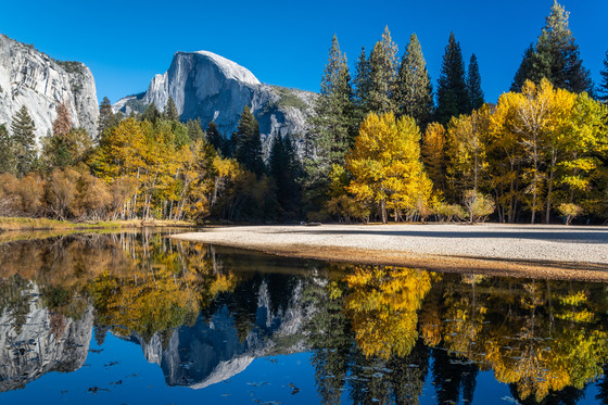 Autumn is a magical time in Yosemite Valley (actually, any time is a magical time in Yosemite Valley). The Merced River is quiet, and reflects Half Dome and trees turned golden for the season.