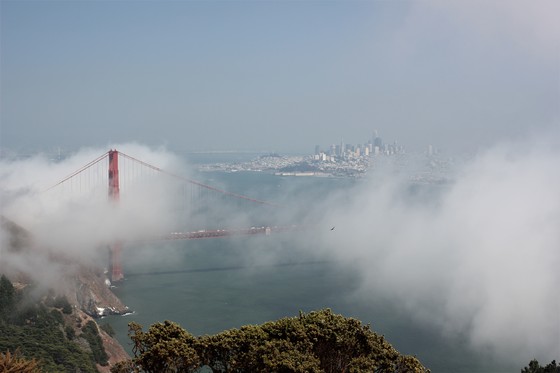 View of the namesake bridge from the Marin Headlands in the Golden Gate National Recreation Area