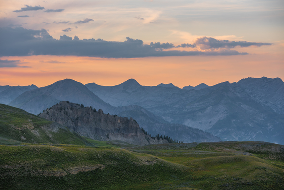 Looking North at the rugged peaks of the Wasatch Range just after sunset
