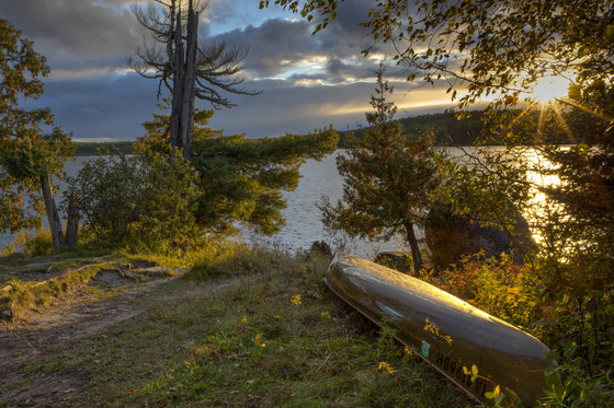 The sun was setting the last evening of our canoe trip to the Boundary Waters. We were camped on Nina Moose Lake and had paddled in snow/ ice pellets earlier in the day. Superior National Forest