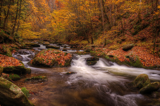Fall in the Smokies -Autumn colors along Laurel Creek Road on the way to Cades Coves in the Great Smoky Mountains National Park