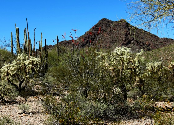 Such a variation of cactus and other plants in are found in the Sonoran Desert. If it's green, it usually pricks you so be careful.