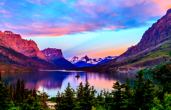 Everything turned purple and pink for this truly extraordinary sunrise overlooking St. Mary Lake, Wild Goose Island overlook