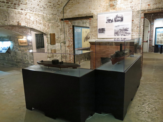 The entire museum is full of history and inside the Fort. This room has replicas of the Monitor and the Merrimack.