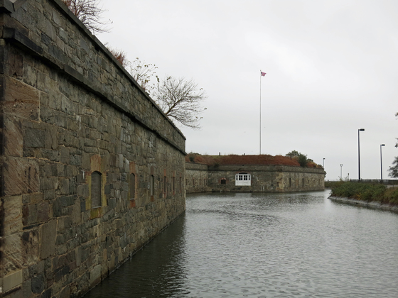 The side entrance into Fort Monroe really highlights the tall stone walls.