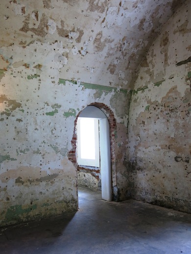 The walls in this room are designed to control the accidental detonation of a cannonball.