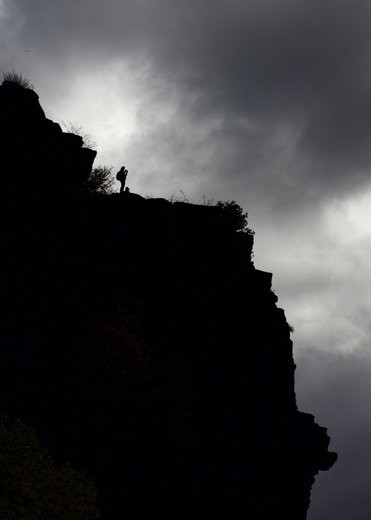 Hiker taking in the view of Harpers Ferry from Maryland Heights
