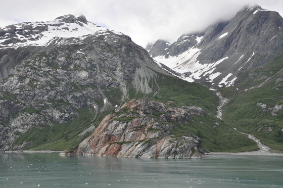 Interesting scenery in Johns Hopkins Inlet in Glacier Bay National Park and Preserve. The cruise ship needed to stay away from the glacier itself but we could see it from the other side of the ship.