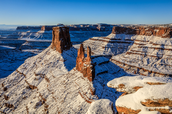 It is an unforgettable experience to get this shoot. It is a little known and wild place called Marlboro Point, managed by BLM. It is extremely hard to access as the road requires a 4X4 Jeep. I planned to shoot the sunrise there and the snow storm made the dirt road impossible to pass. I was trapped at the cliff edge alone for 3 days until the snow melt and finally drove the Jeep out of the middle of nowhere. During the 3 days, I felt helpless and bored but still got some great photos.