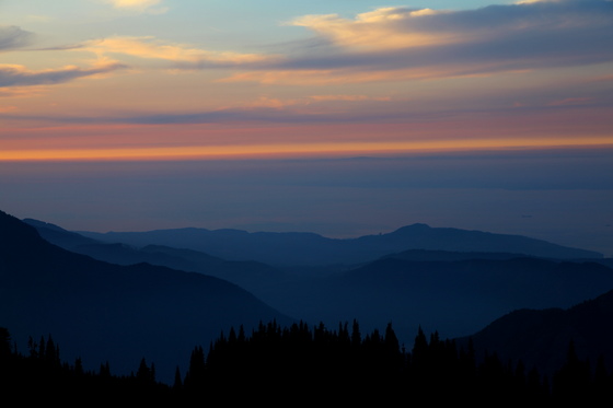 The smoke from forest fires made for a nice layered sunset on the Hurricane Hill trail.