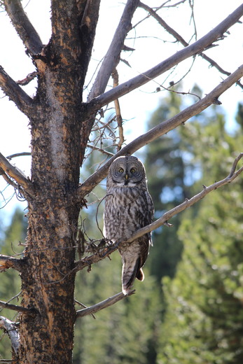 Owl resting on a tree branch in Yellowstone National Park