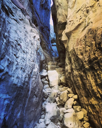 A colleague of mine and I were researching Chacoan culture last December. We took the Pueblo Alto hike up the North mesa where I caught this sharply contrasted shading of the rock crevasse we just worked our way up and down.