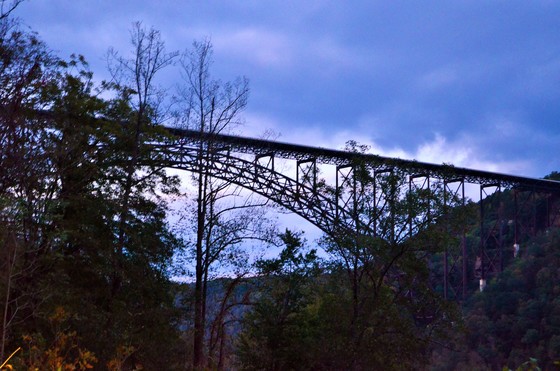 This shot was taken at dusk of the New River Gorge Bridge. The New River Gorge Bridge is the longest steel span in the western hemisphere and the third highest in the United States. In 2013, the National Park Service listed the New River Gorge Bridge in the National Register of Historic Places as a significant historic resource.