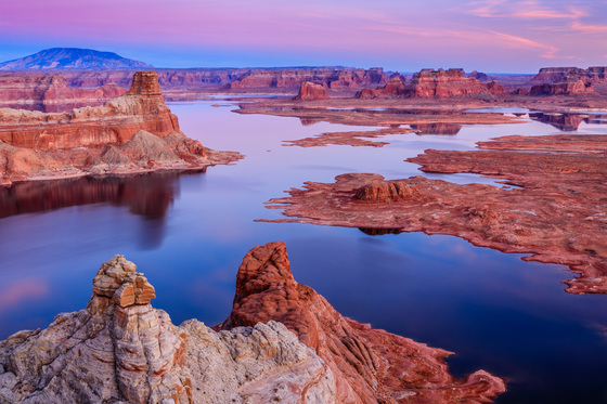 alstrom point of glen canyon has a fantastic view of lake powell with reflections. It is extremely hard to access as the dirt road is full of rocks.