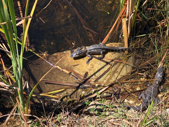 Baby alligators in the wetlands by the bike trail in Shark Valley in Everglades National Park.