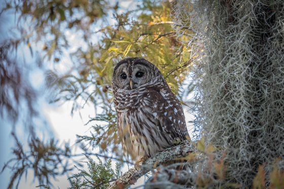 Riding through the swamps of South Louisiana is an experience from minute to minute. You never know what you might see or what might see you. This Barred Owl kept a watchful eye on me as I took its picture.