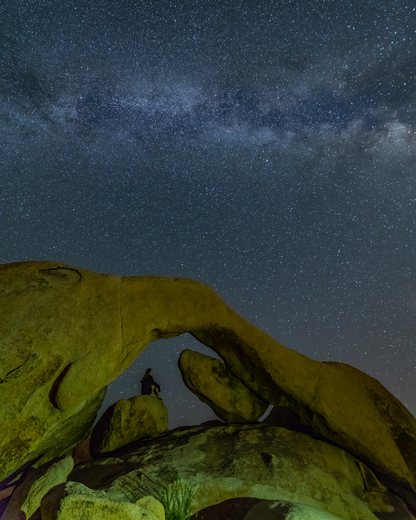 Joshua Arch Milky Way. An unknown woman was sitting under the arch. I was there to shoot the Milky Way. I was able to combine both into this picture.