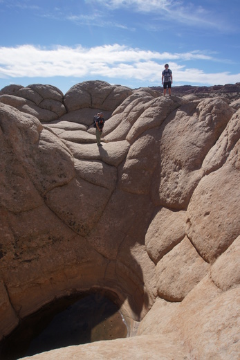 Giant waterholes made over decades of rain and wind. Some are so deep and steep, it would take a rope to get in and out of.