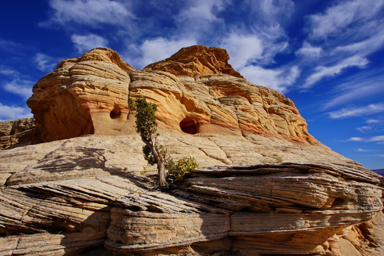 A Hidden Beauty. After a long hike in deep sand and up fragile rock terraces, we found this amazing rock formation that seemed to glow in the low fall sun.