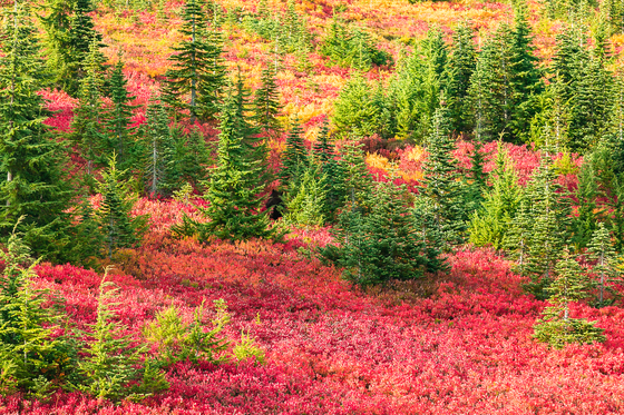 A Black Bear Wanders through the Autumn Foliage on Mt. Rainier