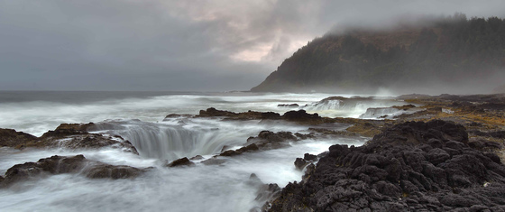 Thor's Well at Cape Perpetua on the Oregon coast. I arrived at sunrise and was surprised to see no one there. I took photos for about an hour and had the coast to myself. I also took photos of the Devil's Churn and the Spouting Horn. I could not have had a better time. Therapy for the soul. August 2018