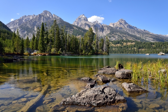 The crystal clear waters of Taggart Lake in Grand Teton National Park