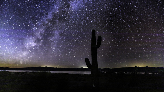 The Milky Way competes with the lights of Las Vegas on the horizon. BLM dispersed camping area near Alamo Lake, Arizona