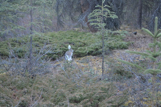 Snowshoe hare keeps an eye on the hikers on the Horseshoe Lake trail.