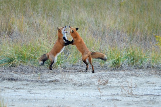 I saw these two foxes in the Chinoteague National Wildlife Refuge on Chinoteague Island VA and got lucky to see this display.
