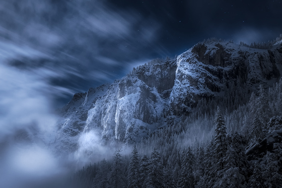 One of my favorite and a very challenging subject to shoot is a clearing winter storm and of all the places, at my favorite Yosemite National Park. As you shiver to the whumph of an avalanche in higher elevations with your feet dig deeply in a large pack of snow patiently waiting for dramatic scenes to unfold. This shot has been made at an iconic spot but for a fleeting moment not pointing my camera to the iconic view. I find it creatively very satisfying when this immersion is established with my surroundings to explore beyond the obvious (or rather this was obvious).