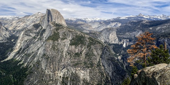 Clouds Rest, Half Dome, Vernal Fall, and Nevada Fall as viewed from Glacier Point.