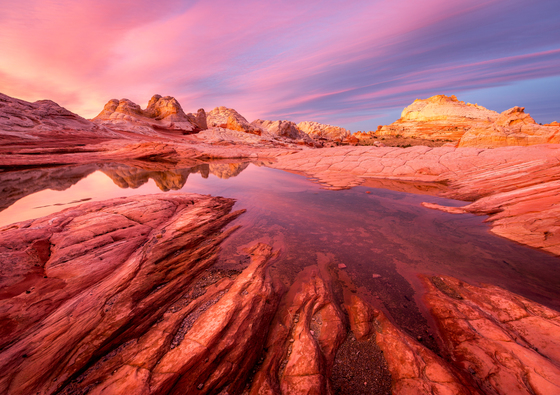 This November morning at the White Posket was truly magical: intense color in the sky, water puddles, and no wind for reflections. This a 1 second exposure before sunrise.