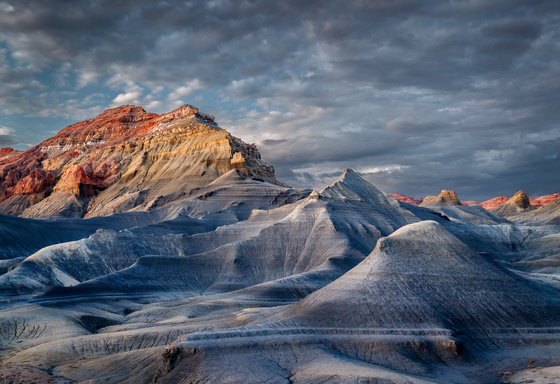 Shot in near darkness with Moonlight mixed in, the badlands off the Smokey Mountain Rd adopt an otherworldly atmosphere.