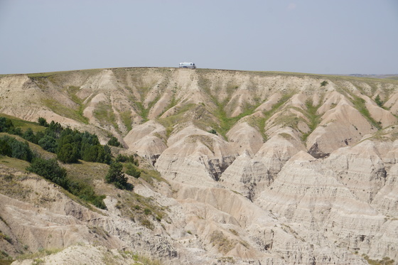 This photo was taken of our Airstream when we were boondocking on "the Wall" overlooking the Badlands National Park. The cliff edge curves around so I was able to taket this photo from an area opposite where we camped for two nights.