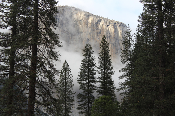 El Capitan shrouded in fog