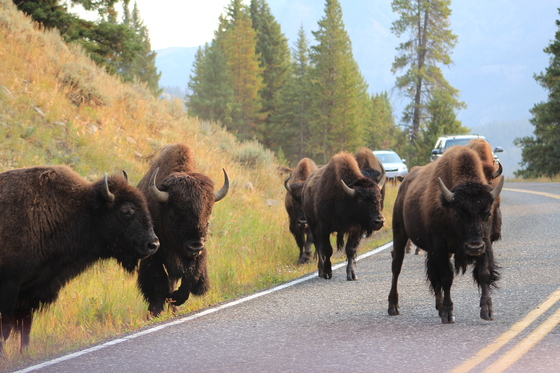 Bison traffic jam