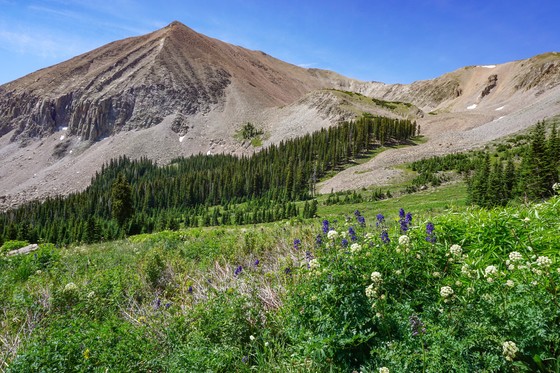 Wildflowers bloom in the La Sal Mountains outside of Moab, Utah.