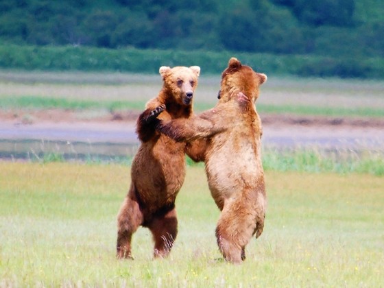 We were fortunate enough to be able to take an excursion to watch brown bears for over four hours in their natural habitat at Swikshak lagoon in Katmai National Park. While there, we saw these young males playing and wrestling with one another for several minutes. This was one of the many shots I was able to take at that time. A once-in-a-lifetime experience!
