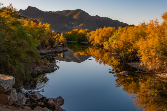A late Fall afternoon provides an opportunity for an angler to possibly catch that 'Big One' along the Lower Salt River. Located on the Tonto National Forest in Central Arizona.
