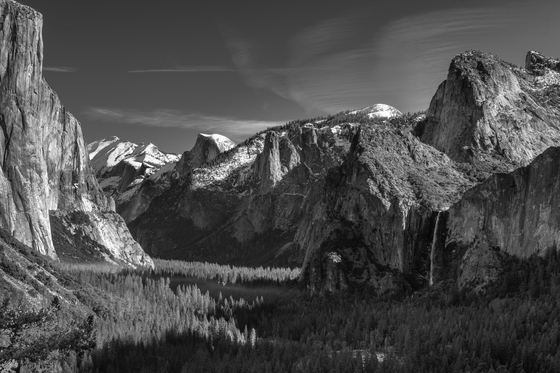 Cold winter day in Yosemite National Park, my friend and I were at Tunnel View. The majestic views in the later morning is beautiful, with patches of mist in the valley. The cold air causes the picture looks blue, so I converted it to B/W. This shot shows the cold morning of Yosemite valley.