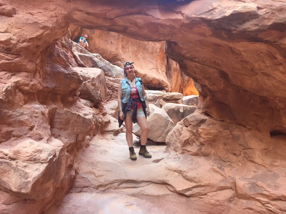 My daughter, McKenzie adds some serious perspective and depth (upper left corner of picture) to this shot as our family friend, Jessica does to this small arch within the Fiery Furnace.
