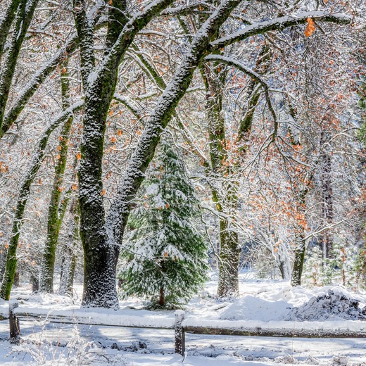 This is the south side of Southside Drive in Yosemite Valley, just in front of Bridalveil Fall. Snow in the valley is truly a spectacular winter wonderland to behold.