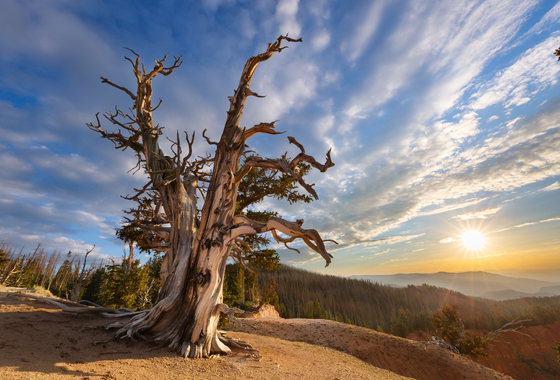 Old bristlecone pine bows to the sun.