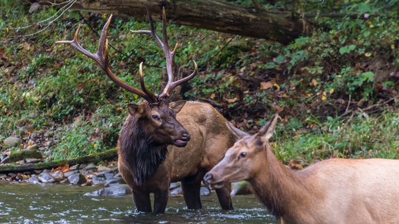 Elk in the Oconaluftee River near Cherokee, NC