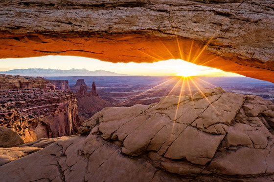 Early morning sunrise through Mesa Arch.