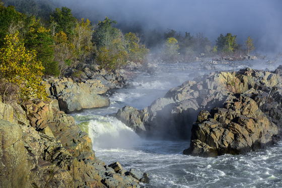 The Great Falls of the Potomac taken on a foggy October morning from Overlook 2 on the Virginia side of the park.